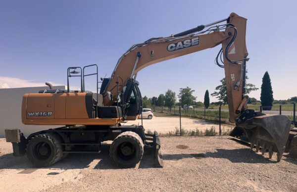Se vende excavadora de ruedas CASE WX168 del año 2016 con 5818 horas de trabajo certificadas por casa oficial | Peso: 18.000 kg | Potencia motor: 105 kW | Incluye cámara trasera | Incluye 3 cazos: de carga, de limpieza oscilante y de 40cm | Posibilidad de añadir más implementos | En muy buen estado y lista para trabajar