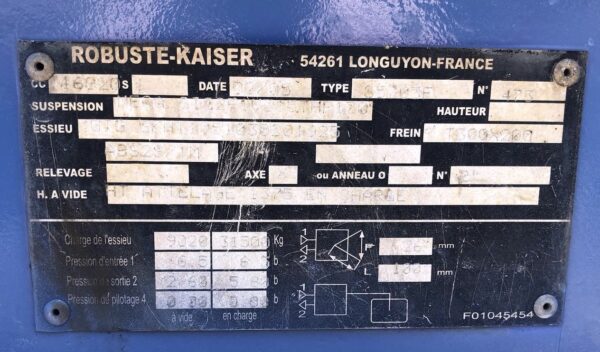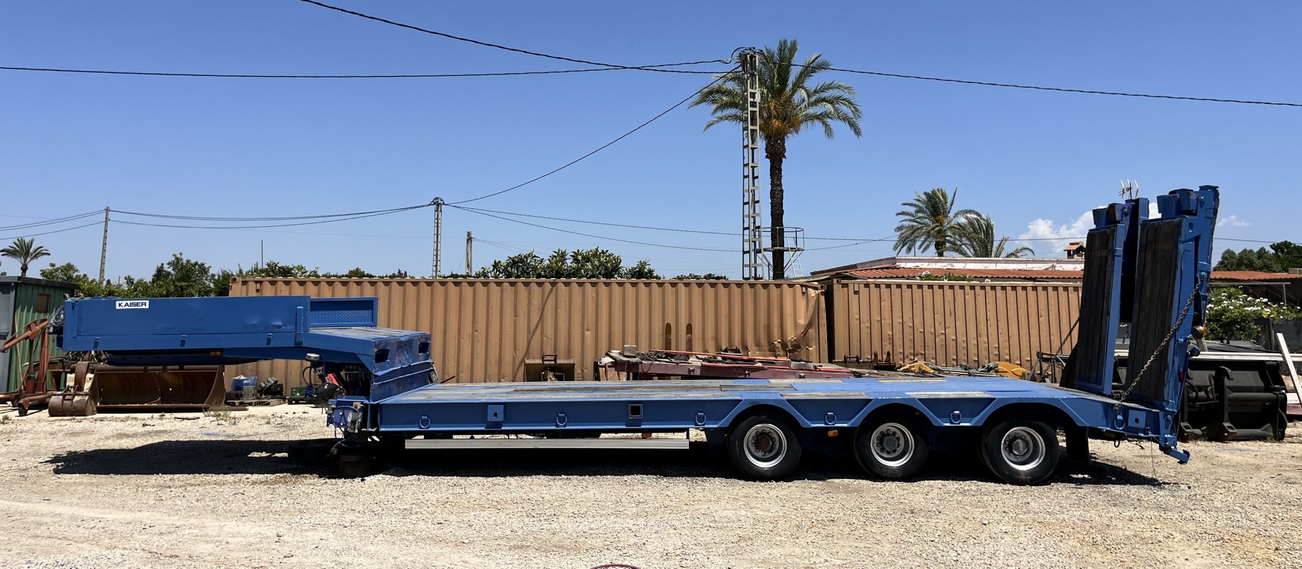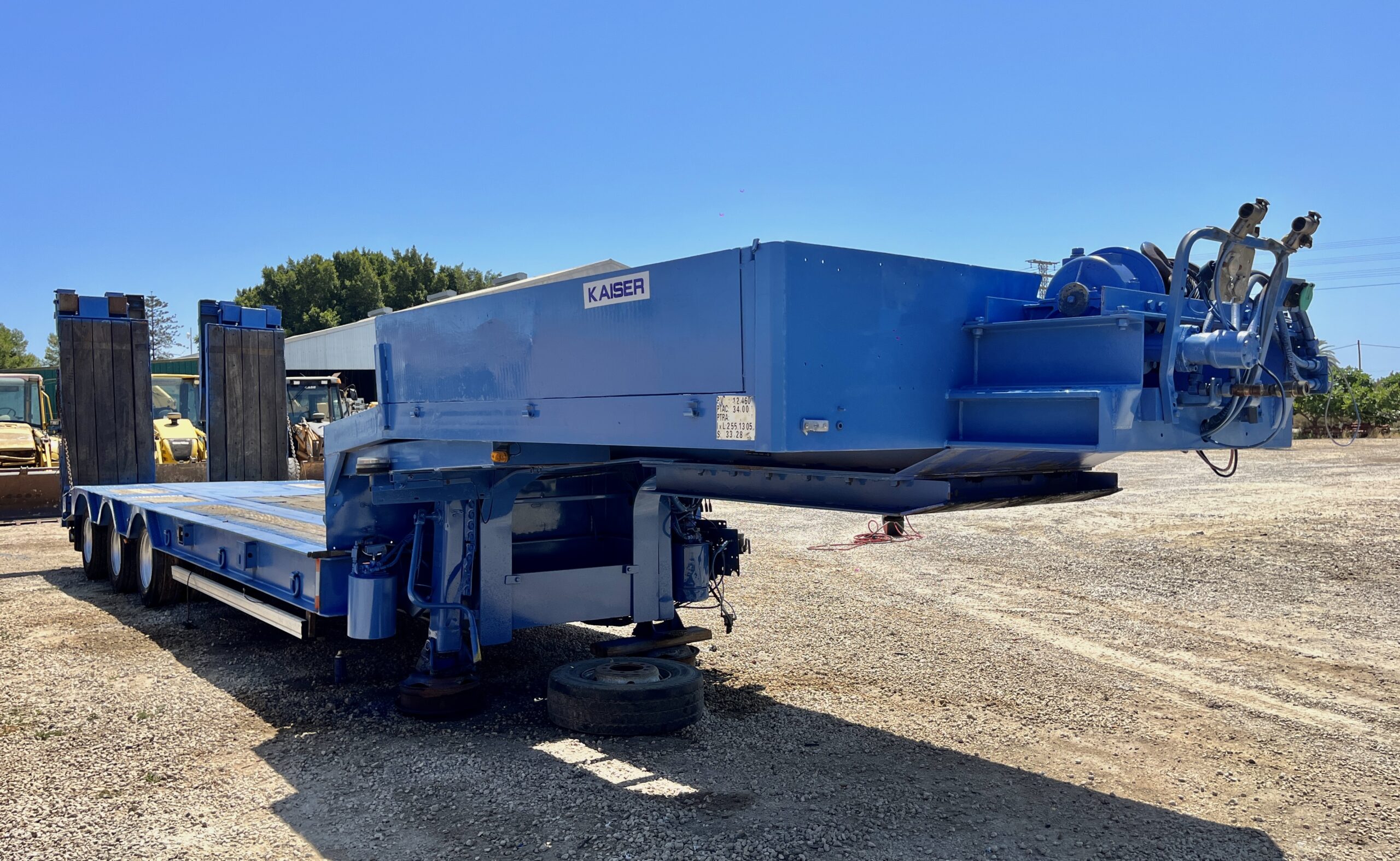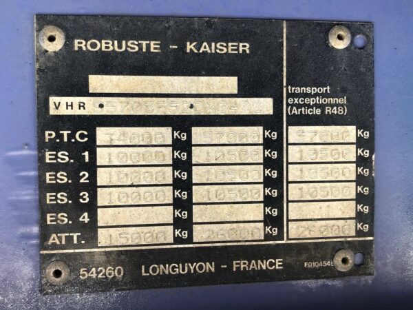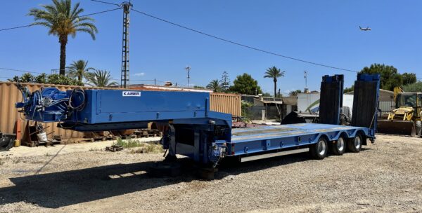 Se vende góndola KAISER S5703 F del año 2005 de tres ejes CON CABRESTANTE | Ancho: 2,55 m | Apertura hidraulica: hasta 3 m | Peso máximo permitido: 57.000 kg | Revisada y lista para su uso