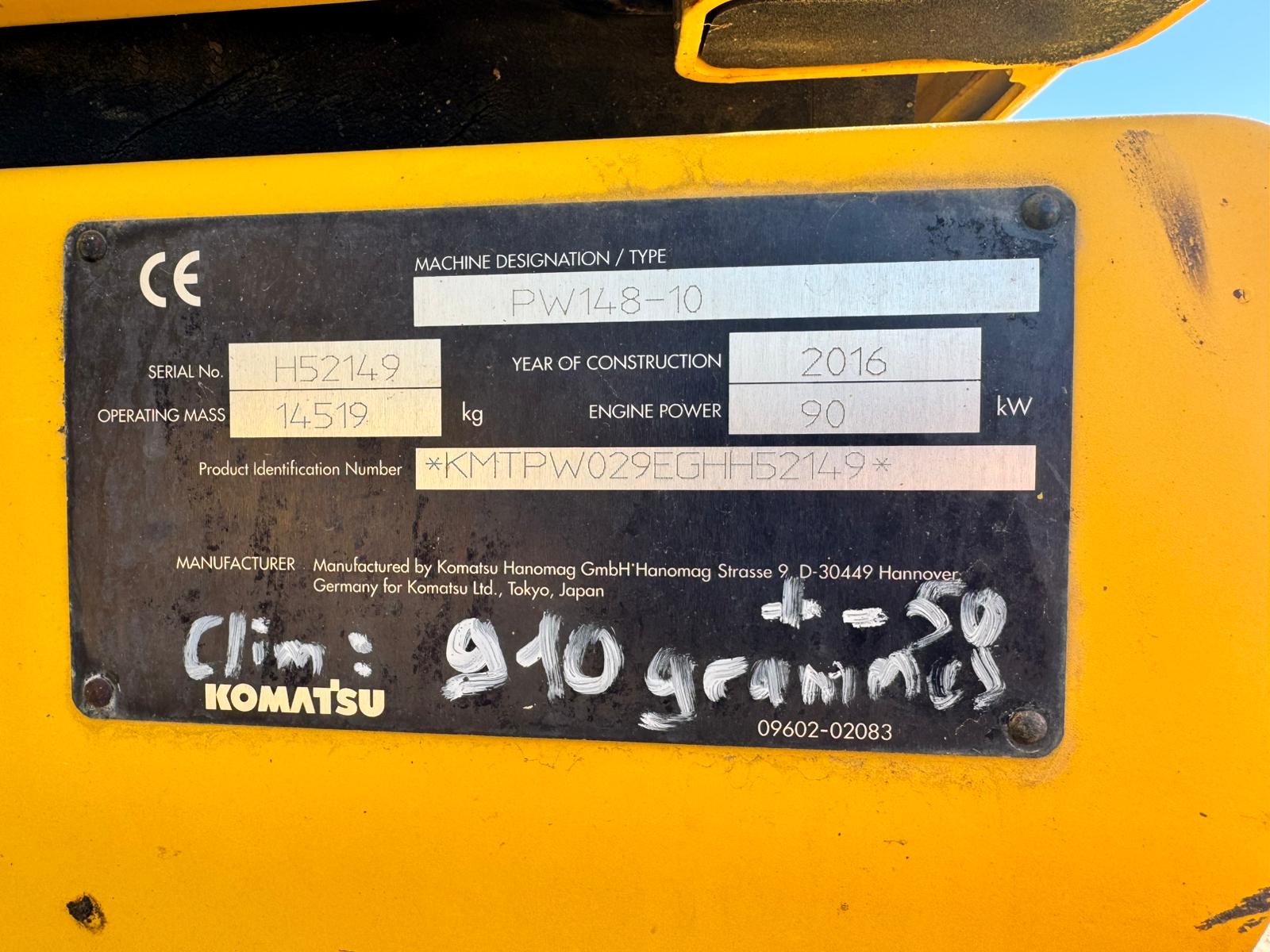 Se vende excavadora de ruedas KOMATSU PW148-10 del año 2016 con 10.122 horas de trabajo | Peso: 14.519 kg | Potencia motor: 90 kW | Aire Acondicionado | Engrase Centralizado | Incluye 2 cazos | Para más información no dude en contactar con nosotros