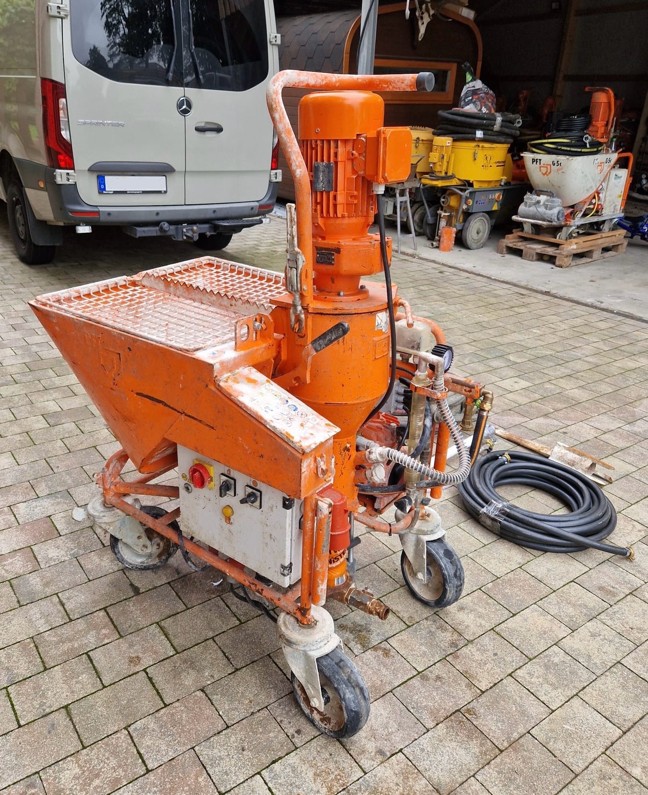 Se vende bomba mezcladora para proyeccion de yeso PFT G4 del año 2018 | Incluye bomba de agua | Tornillos nuevos | La máquina está totalmente revisada | Para más información no dude en contactar con nosotros