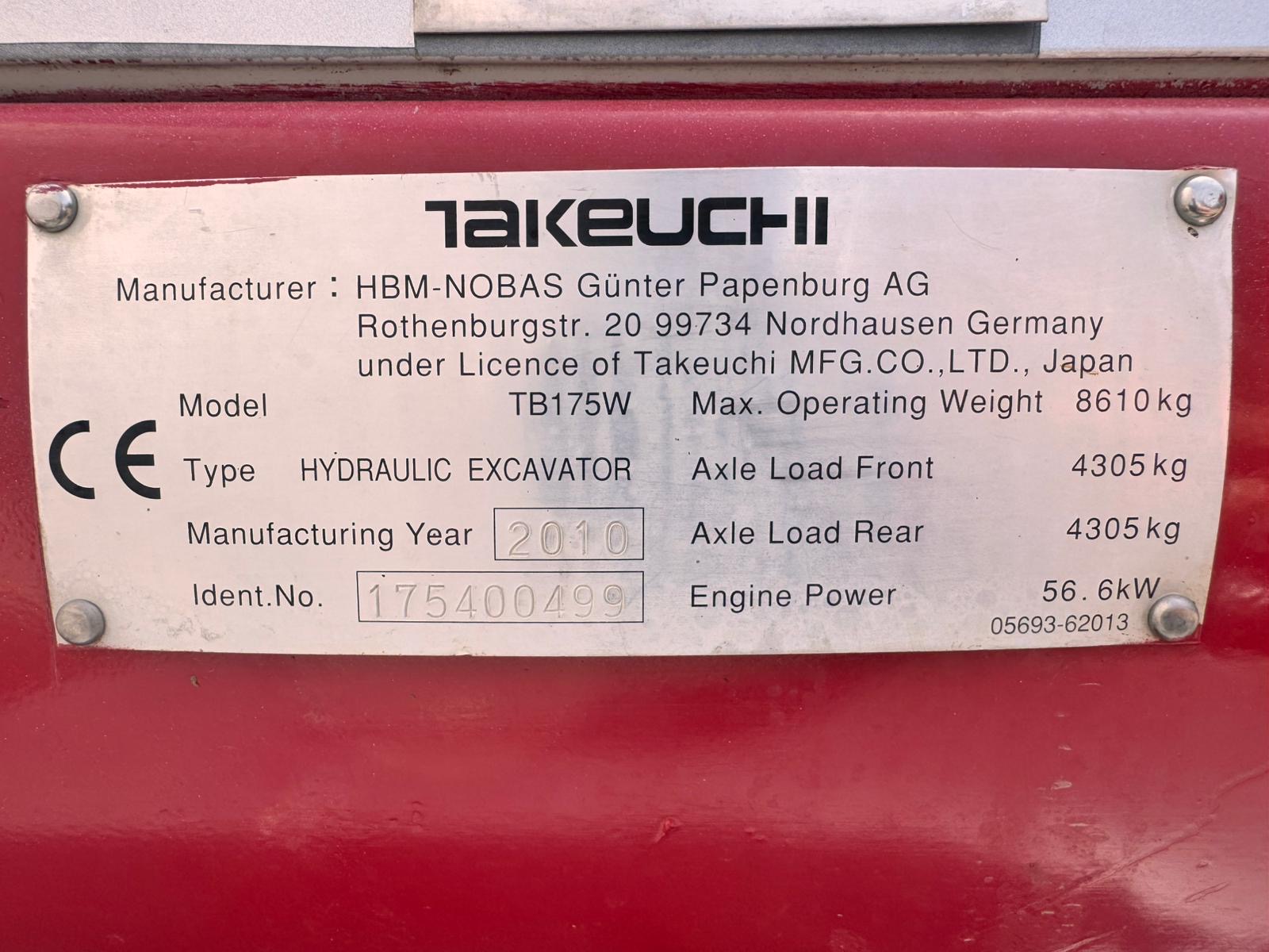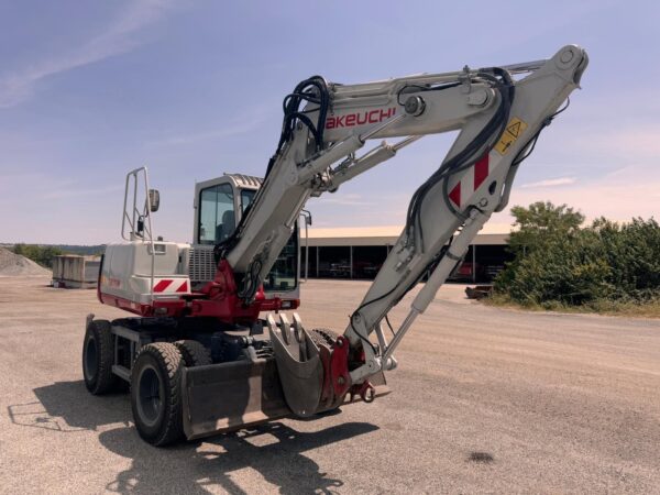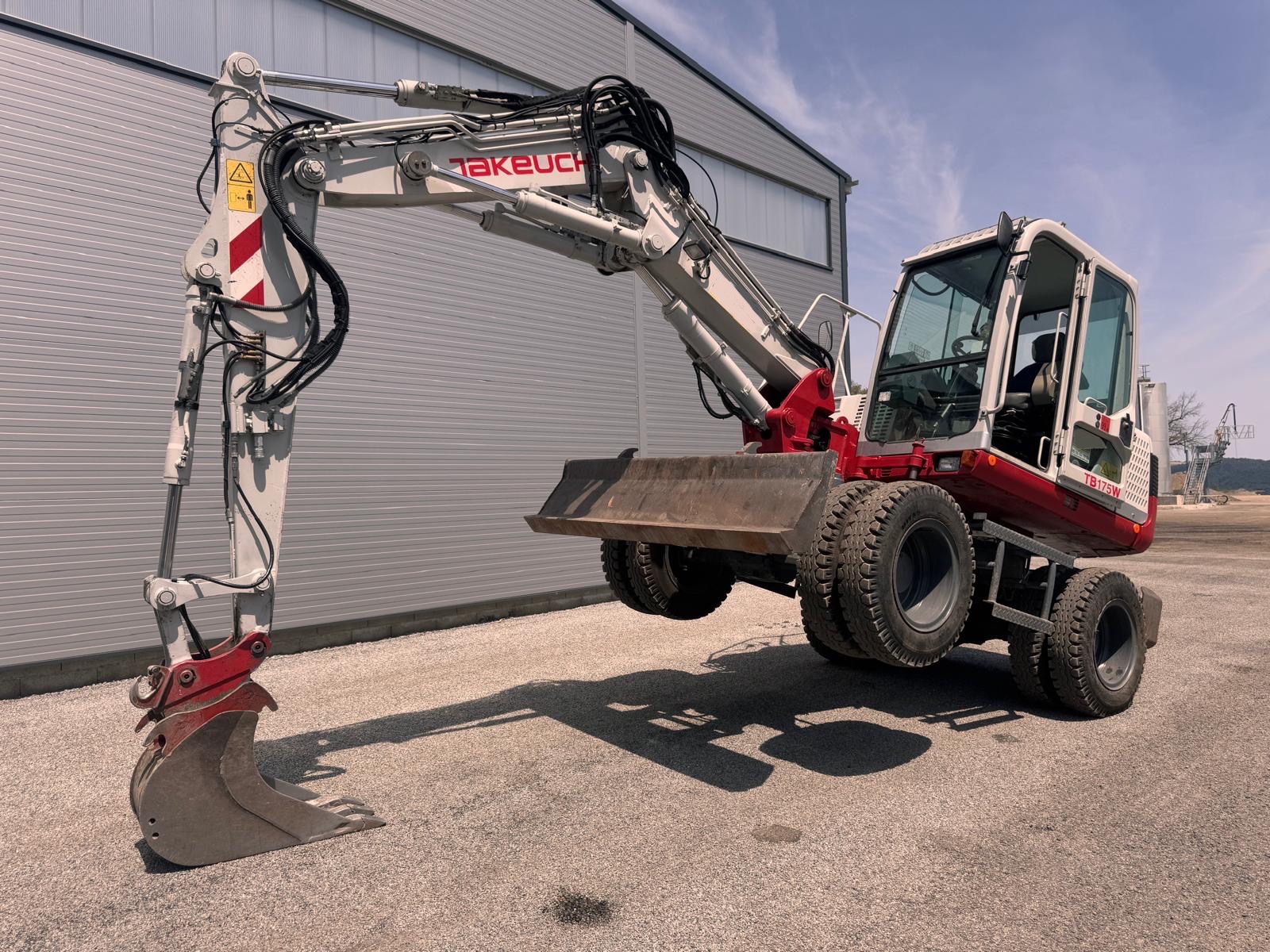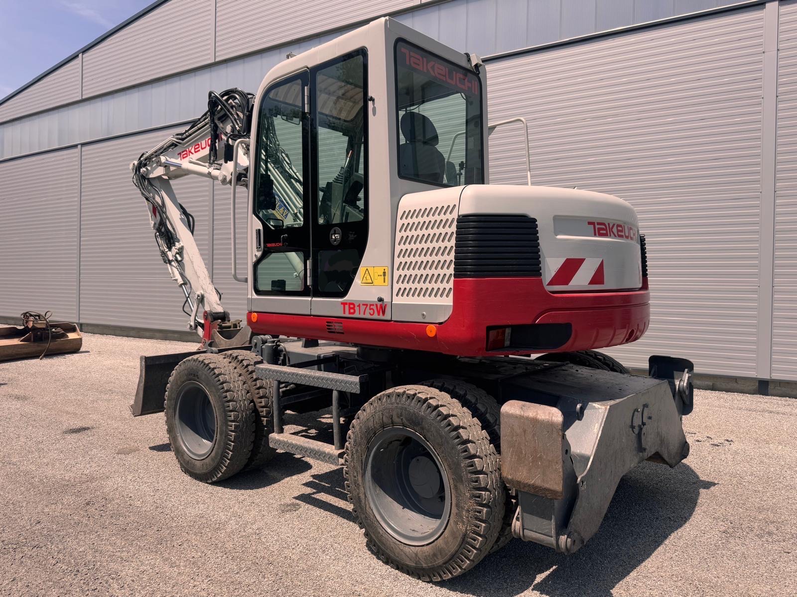 Se vende excavadora de ruedas TAKEUCHI TB175 W del año 2010 con 8473 horas de trabajo | Potencia motor: 56.6 kW | Peso: 8.610 kg | Incluye 2 cazos: de limpieza y de 30cm | Para más informacion no dude en contactar con nosotros